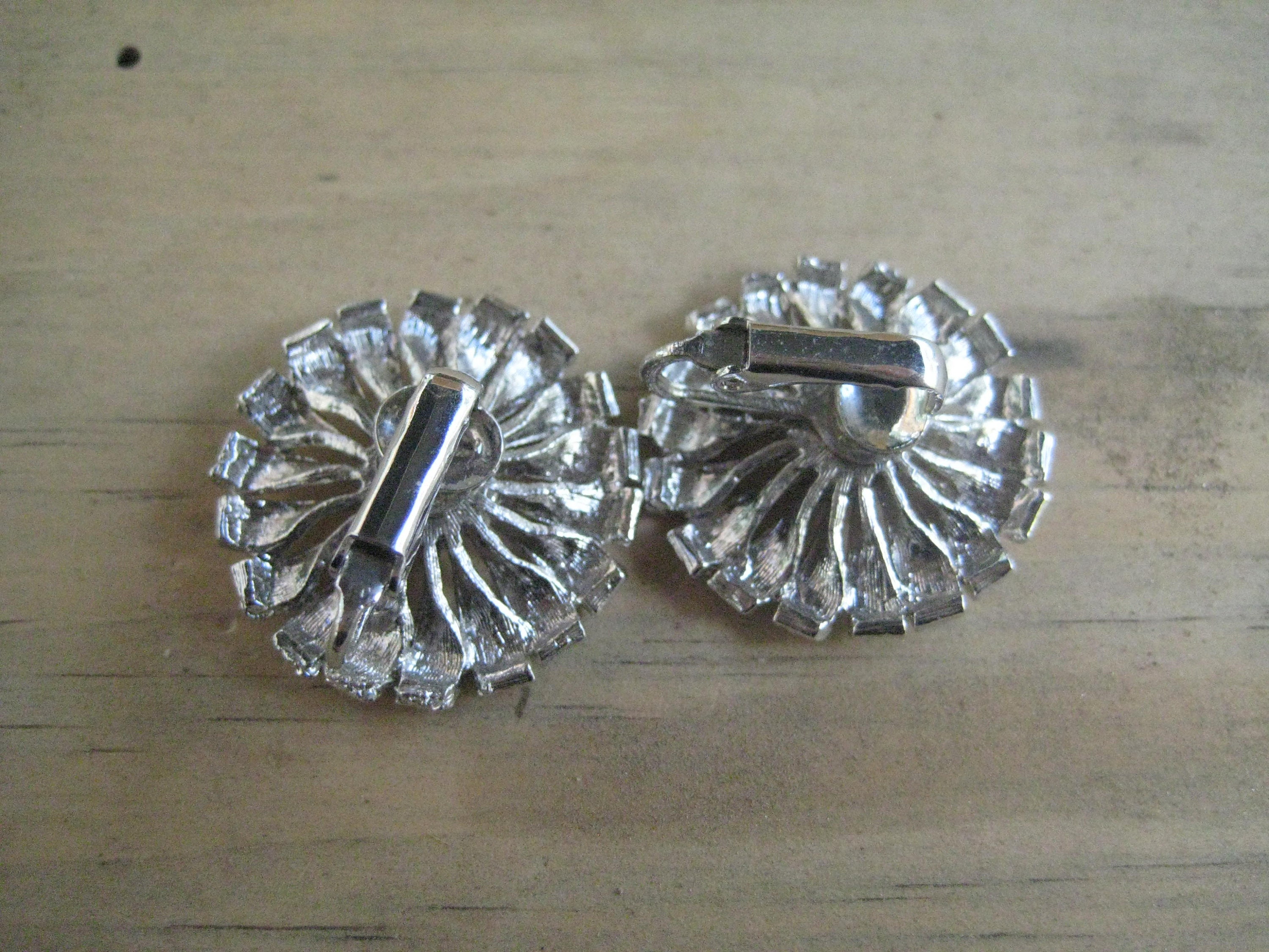 Unmarked Clip on earrings shaped like a flower in silver tone metal.