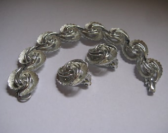 Brass Demi Parure of Mesh Ribbon Pin and Screwback Earrings Very Rare Pieces